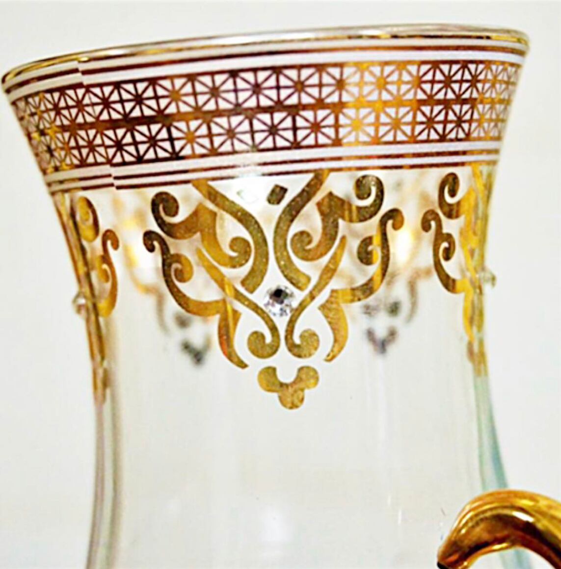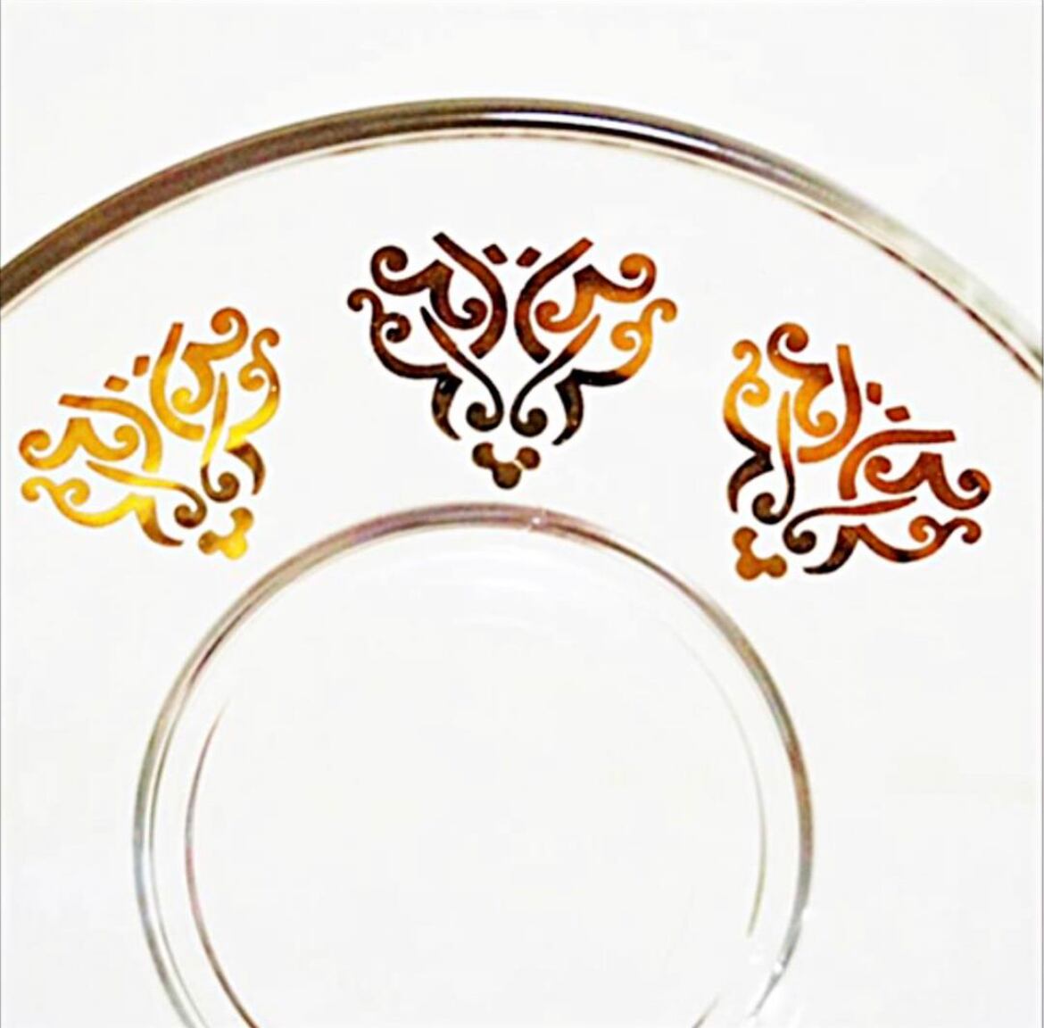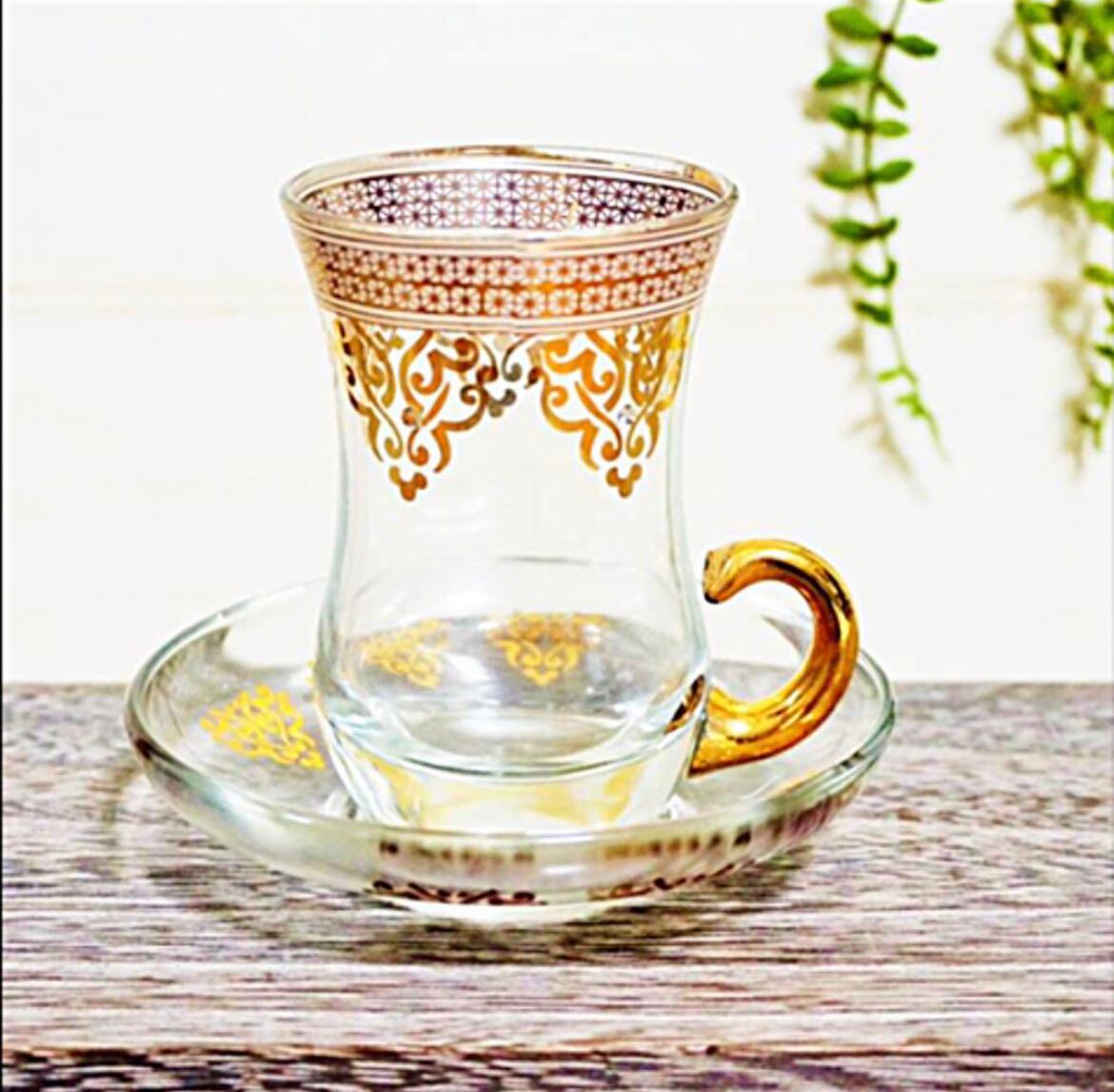 【トルコ】耐熱 チャイグラス&ソーサー *クリア ゴールド*取っ手&ストーン付き!