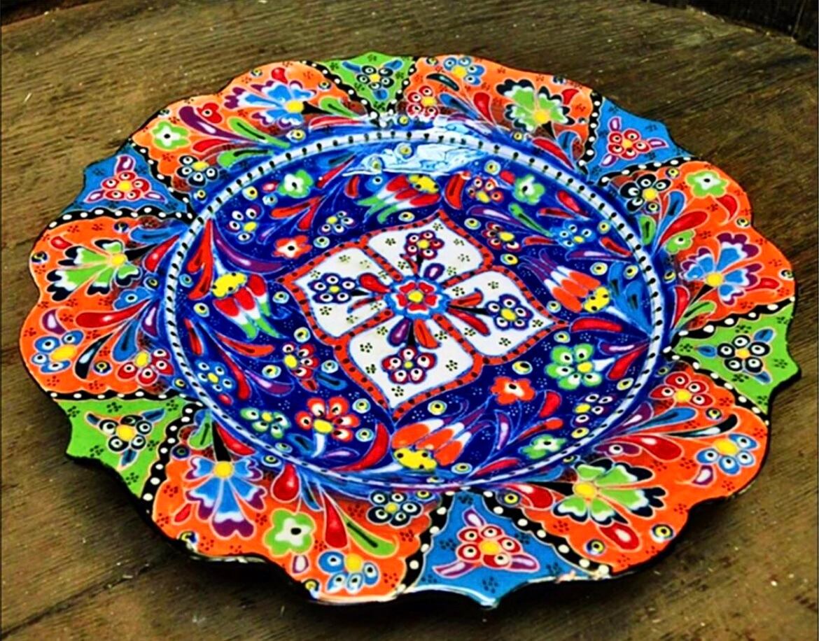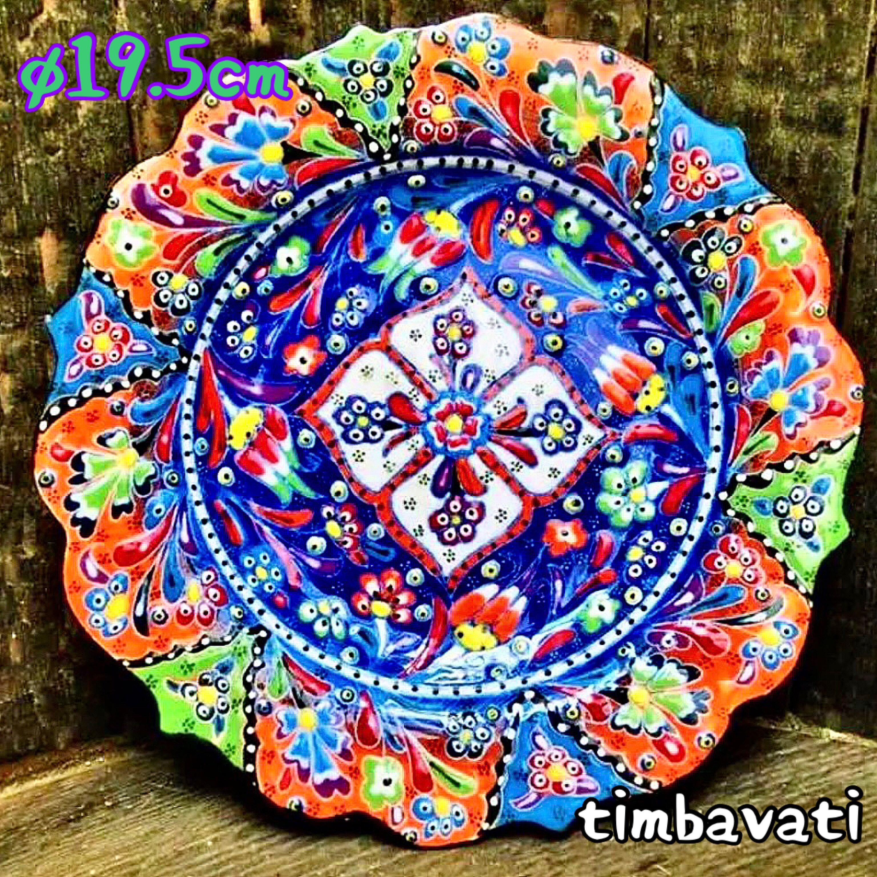 19.5cm【トルコ陶器】手描き 中皿 壁掛け *カラフル*キュタフヤ陶器