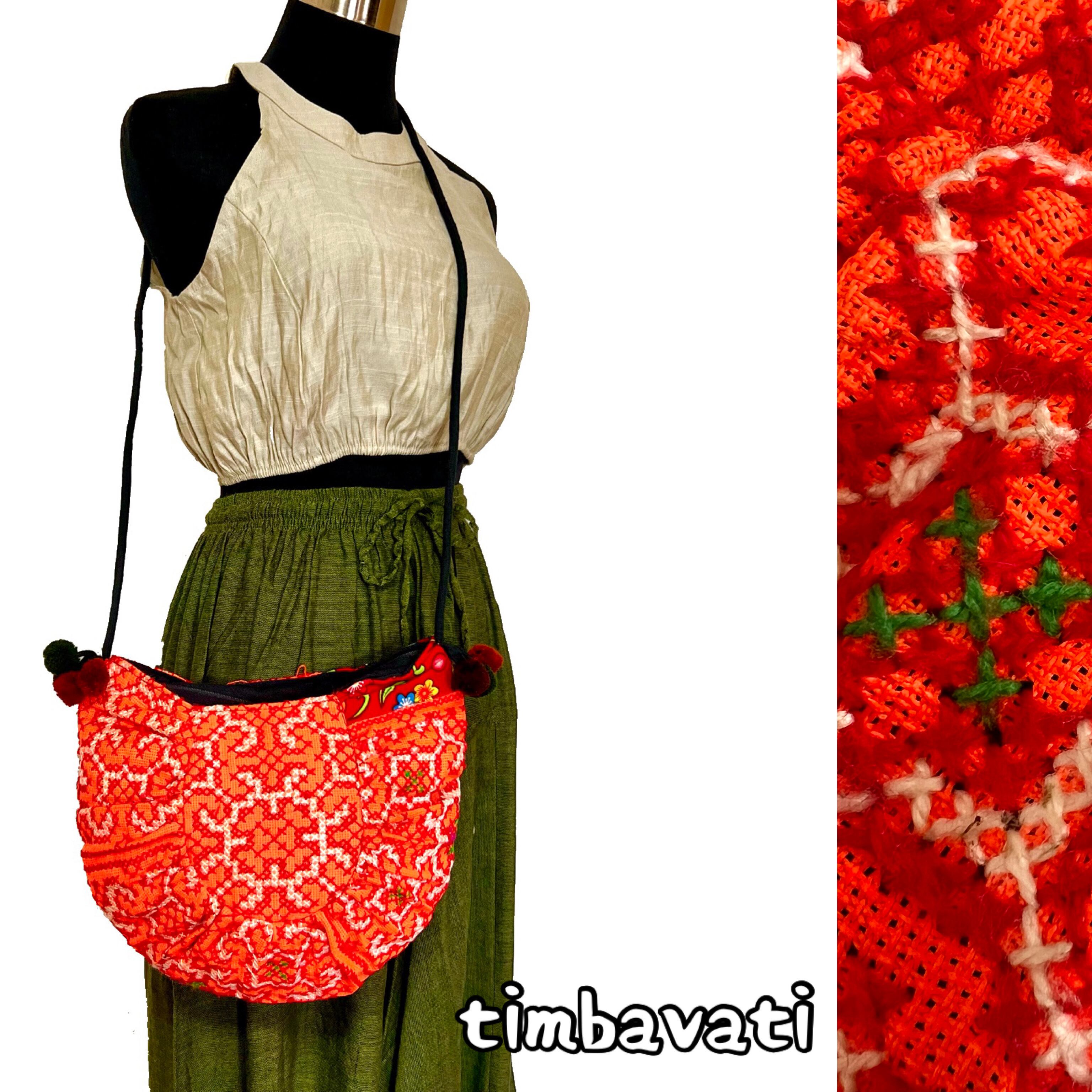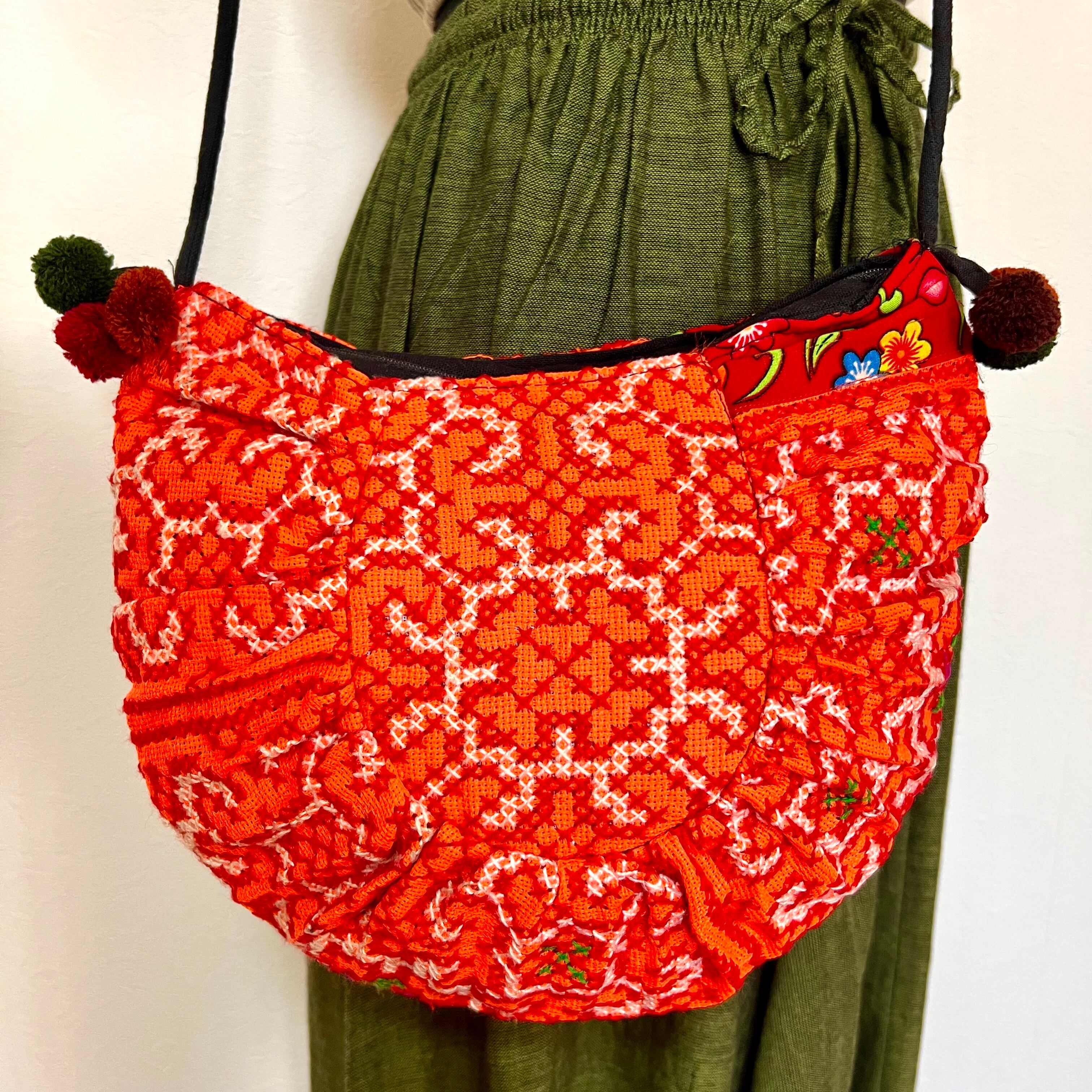 *山岳少数民族【モン族】の色鮮やかな古布刺繍のショルダーバッグを入荷しました!