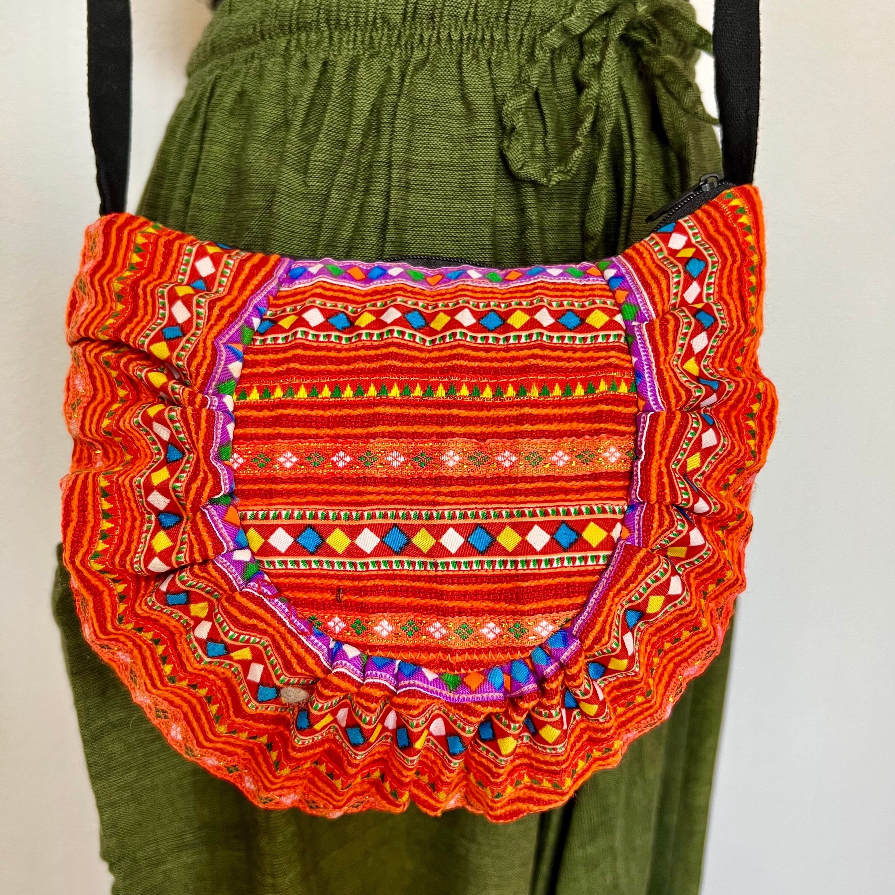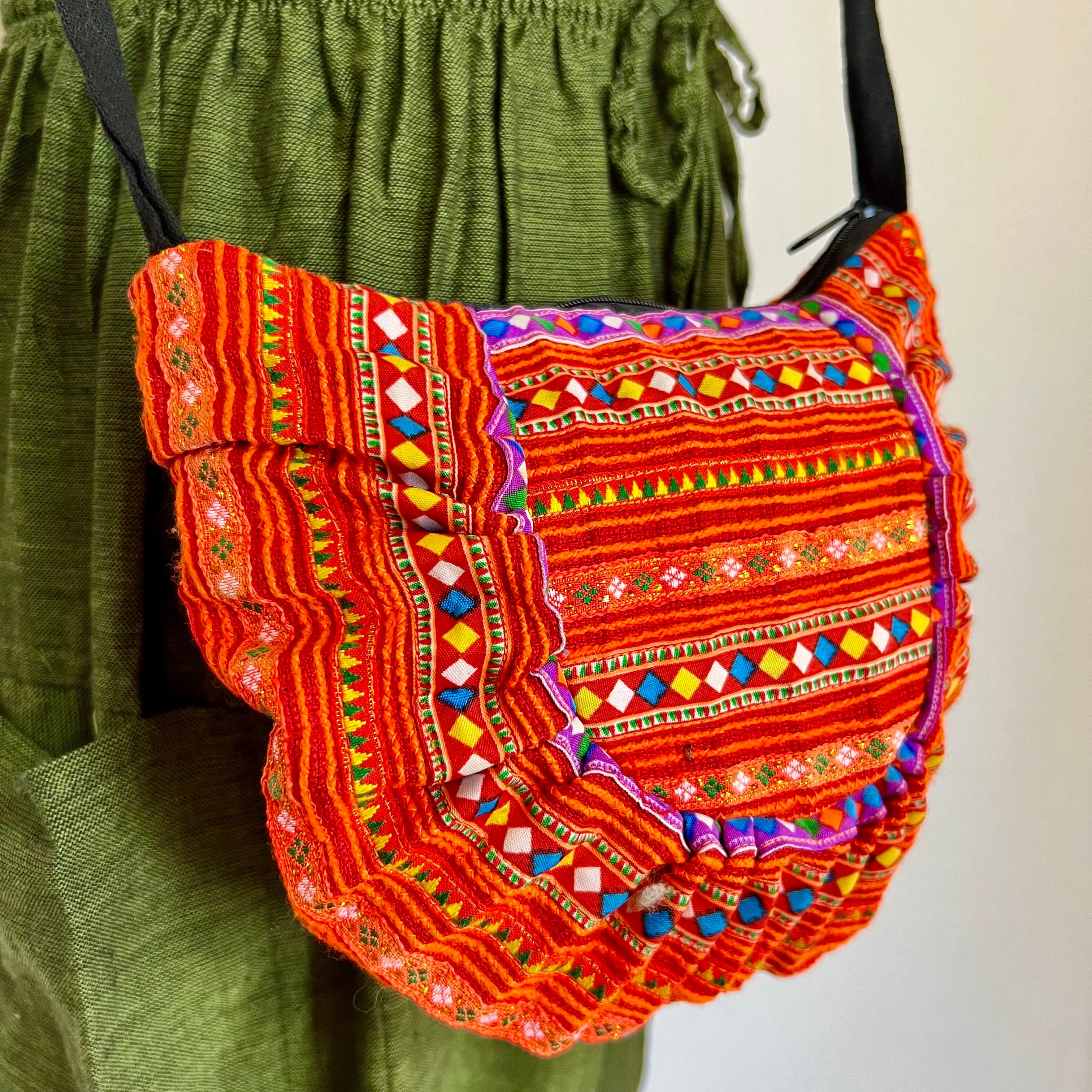 山岳少数民族【モン族】の色鮮やかな古布刺繍のショルダーバッグを入荷しました!!