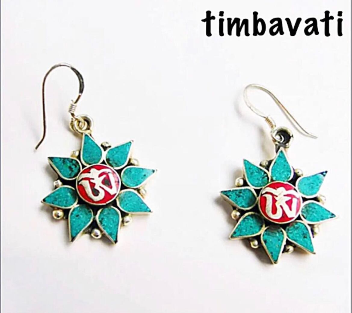 【チベット】ターコイズ ぶら下がりピアス *OM*