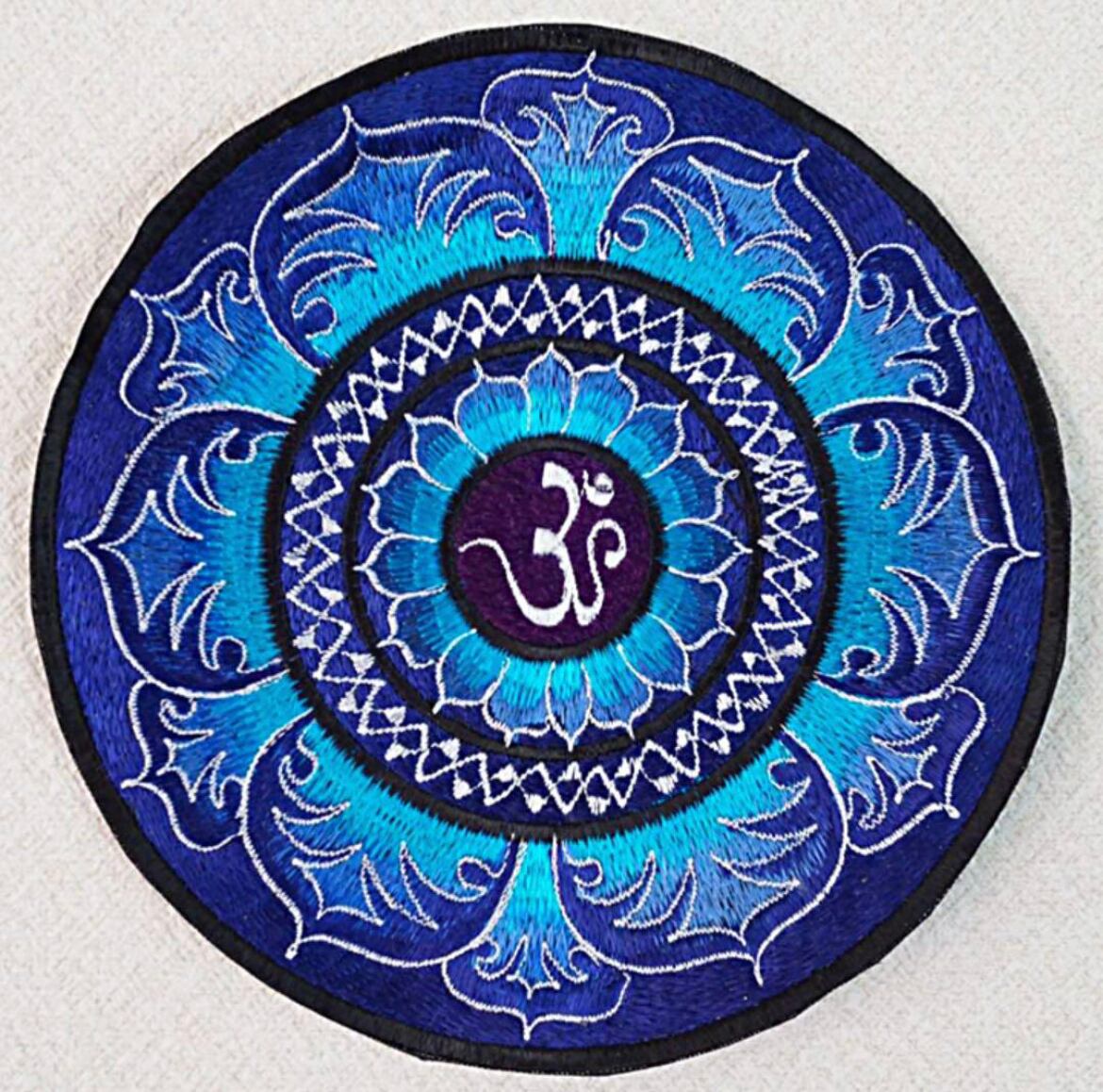 直径22cm【インド】カラフル サイケデリック 総刺繍 ワッペン(鍋敷き)