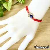 【トルコ】紐編 ビーズ ブレスレット ハムサ ( ファティマの手 ) ナザールボンジュウ * レッド *