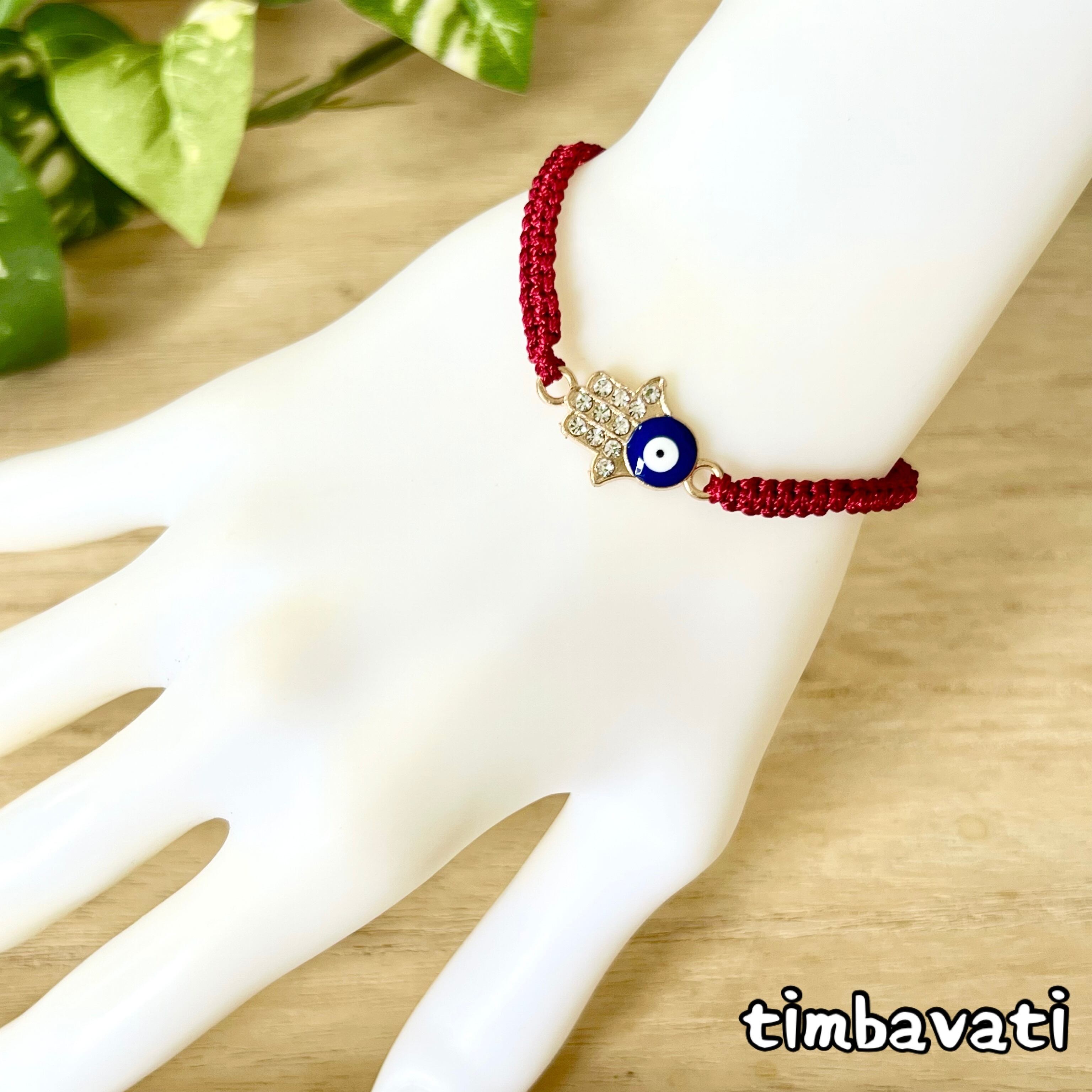 【トルコ】紐編 ビーズ ブレスレット ハムサ ( ファティマの手 ) ナザールボンジュウ * ボルドー *